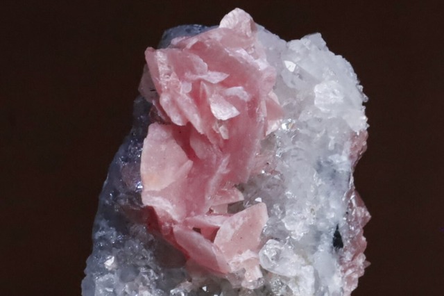 アイスクリームピンクの美花 「肉眼でも見応えある造形」天然 ロードクロサイト オン クォーツ 14g 鉱物 標本|中国 Wutong Mine