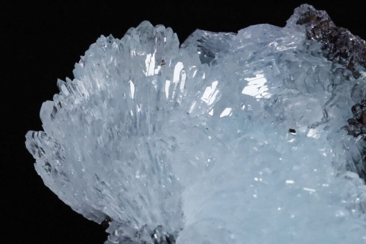 澄んだ青色と繊細な結晶の群生が魅力で、光を受けると透明感とともに瑞々しい輝きを放ちます。産地特有の美しいブルーの色味は市場でも人気が高く、この鉱山は2019年12月7日に閉山してしまっているので、今後ますます入手困難になっていくと思われます。