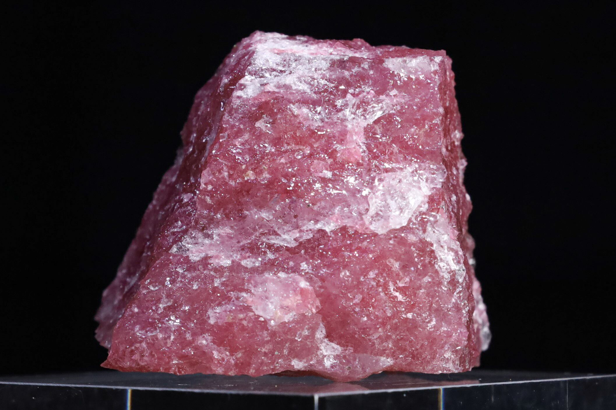 この鉱床では、ロードナイトが熱水変質を受けて形成され、クォーツとの混合により半透明な質感や模様が生まれることが多く、標本としての魅力だけでなく、装飾品や彫刻材料としても高く評価されていて、他の産地にはない独特の美しさを持っています。