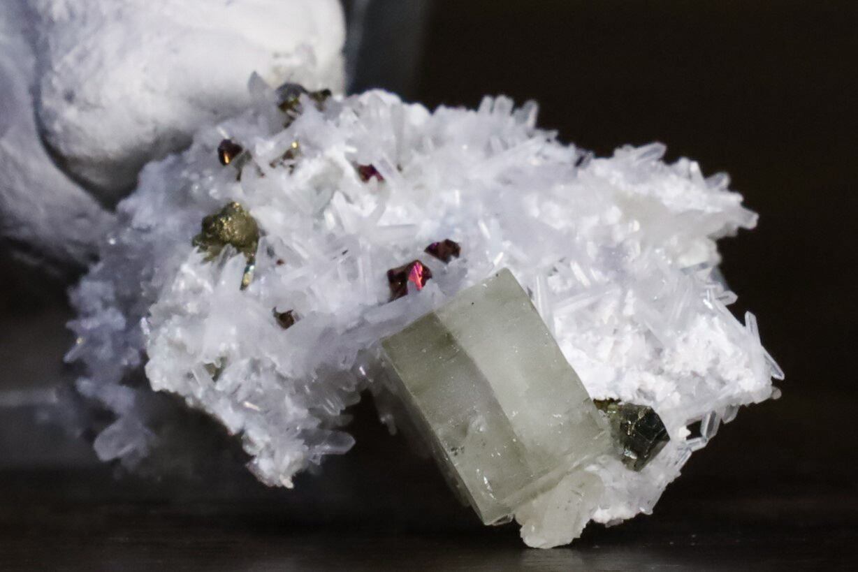 こちらはペルー、アンデス山脈のHuanzala Mineから産出した、アパタイト、パイライト、 クォーツの共生標本です。アンデスは数千万年前からの造山運動と火山活動により、多彩な鉱物資源が形成された地域で、