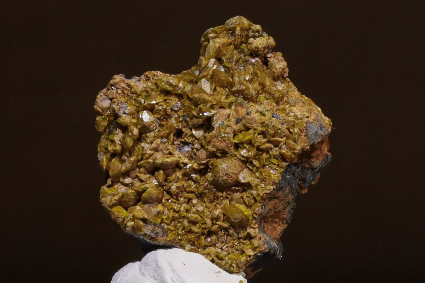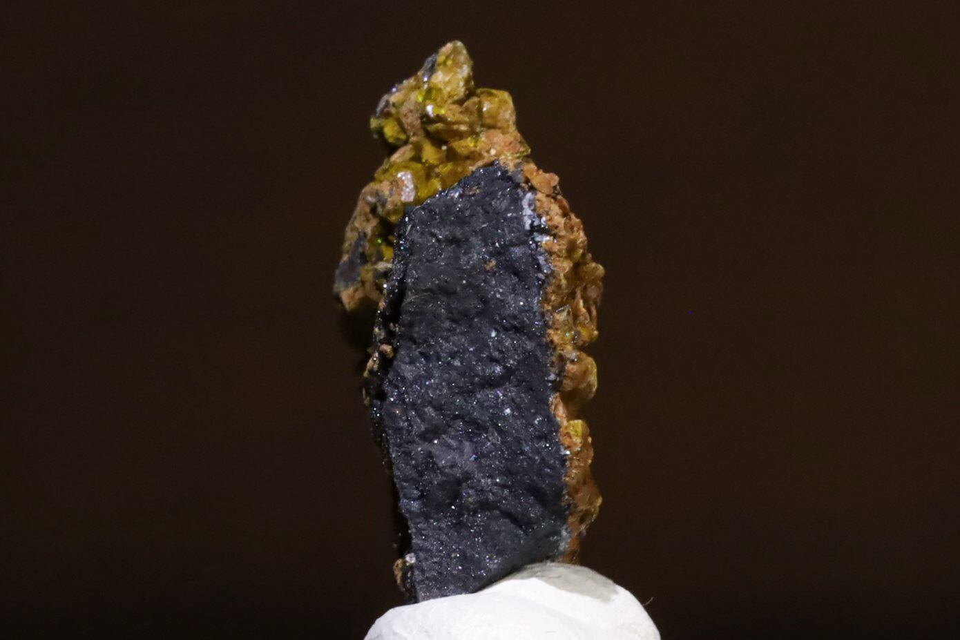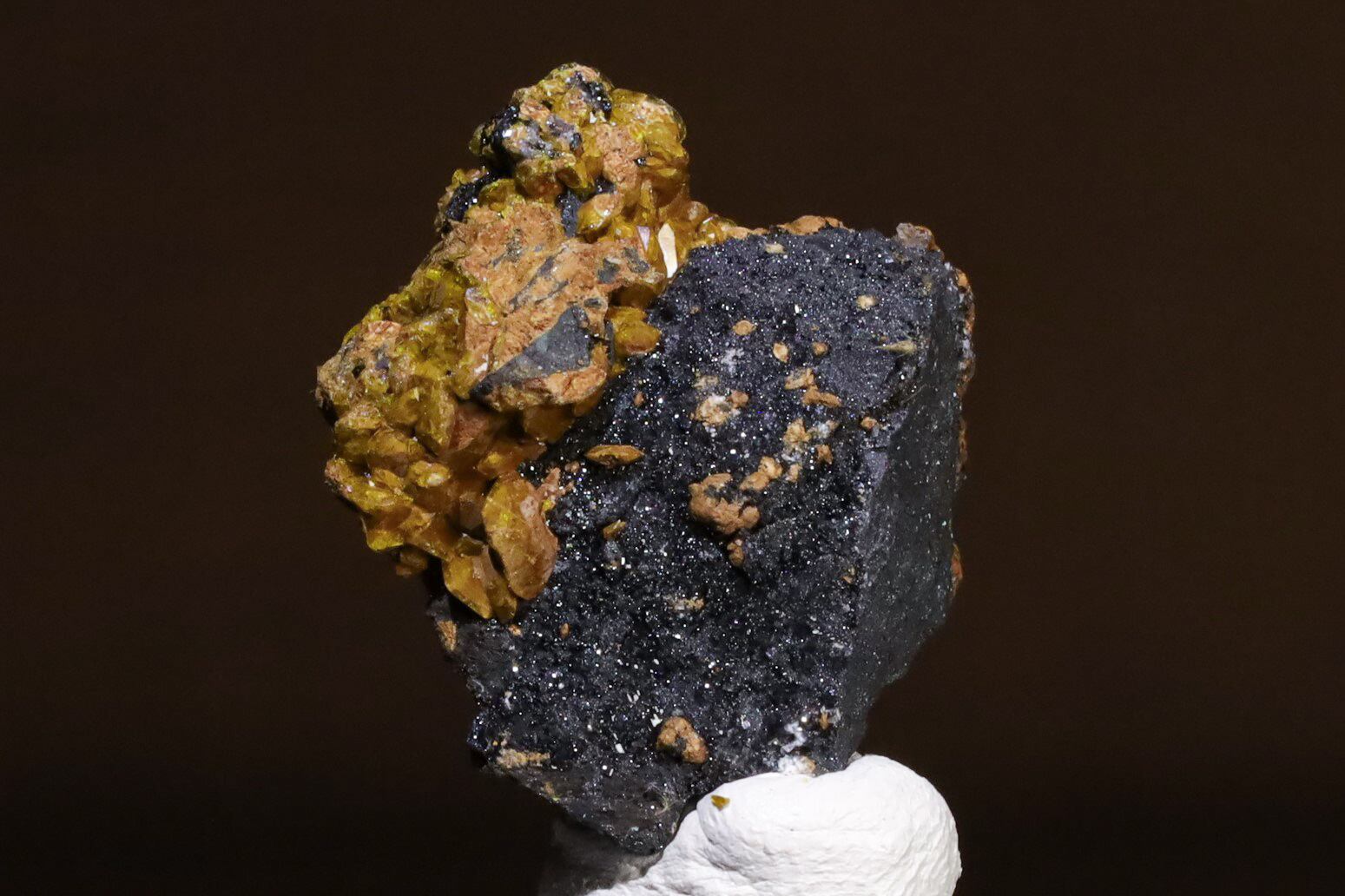 N'Chwaning II鉱山は、現在稼働しているマンガン鉱床としては世界最大級で、24億年前から22億年前の古原生代に形成されたカラハリマンガン鉱床の一部で世界的な鉱石の名産地として知られています。そんな、名産地からのコチラのスタルマナイトは、マンガンおよび鉄(一般的には鉄ですが、この産地にものは鉄の一部がマンガンに置換していると考えられています)を含む堆積物が海洋環境で酸化され、地殻変動や火成活動によって高温高圧の条件下で、地下水の移動によってもたらされた硫黄やカルシウムと反応し、途方もなく長い年月の中で美しく結晶化したものと考えられています。