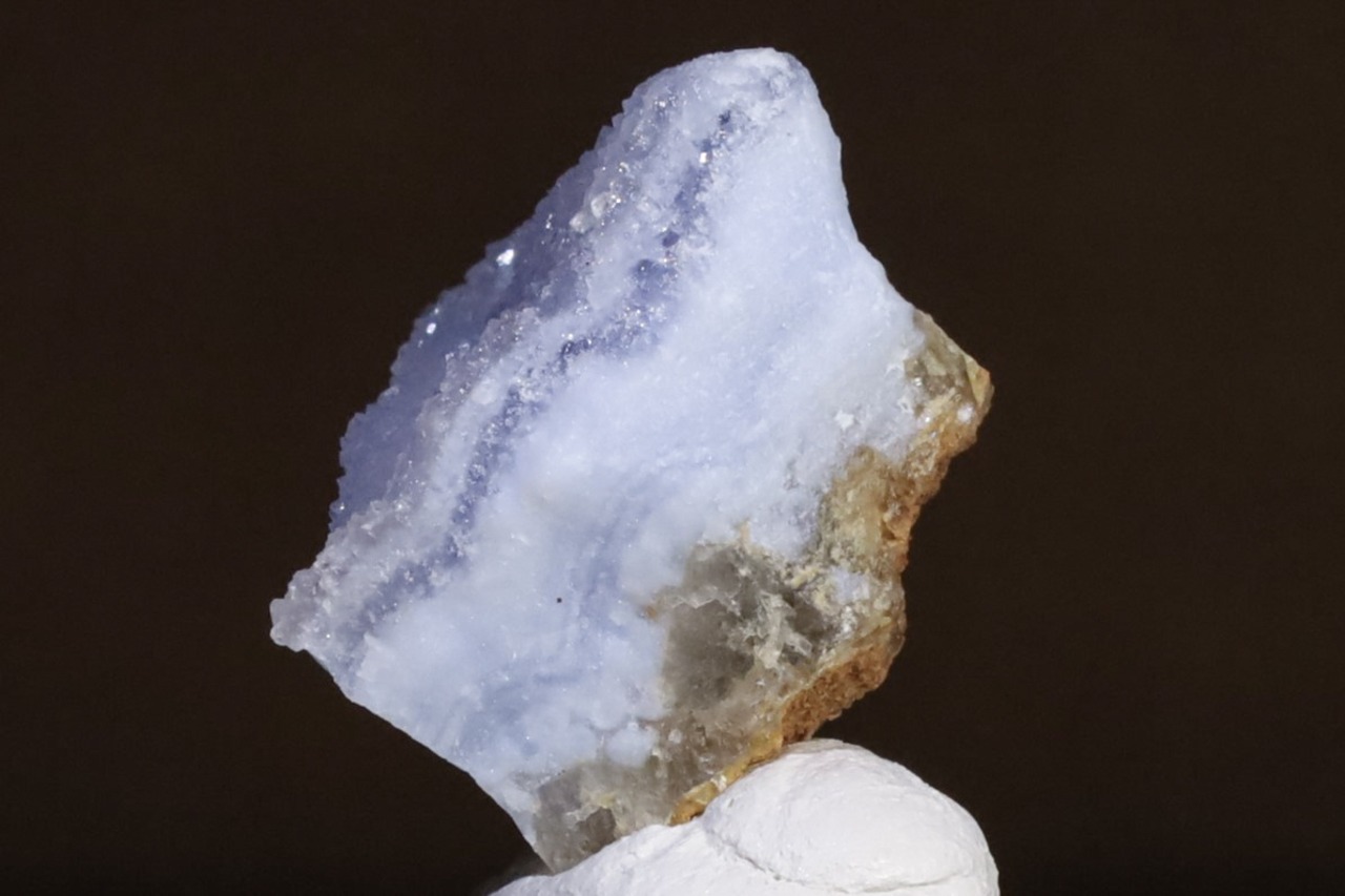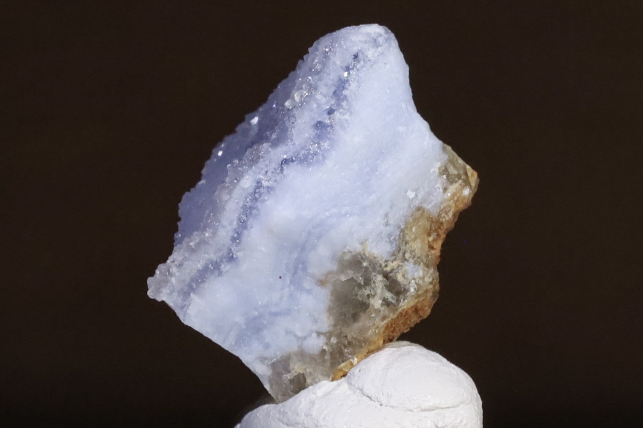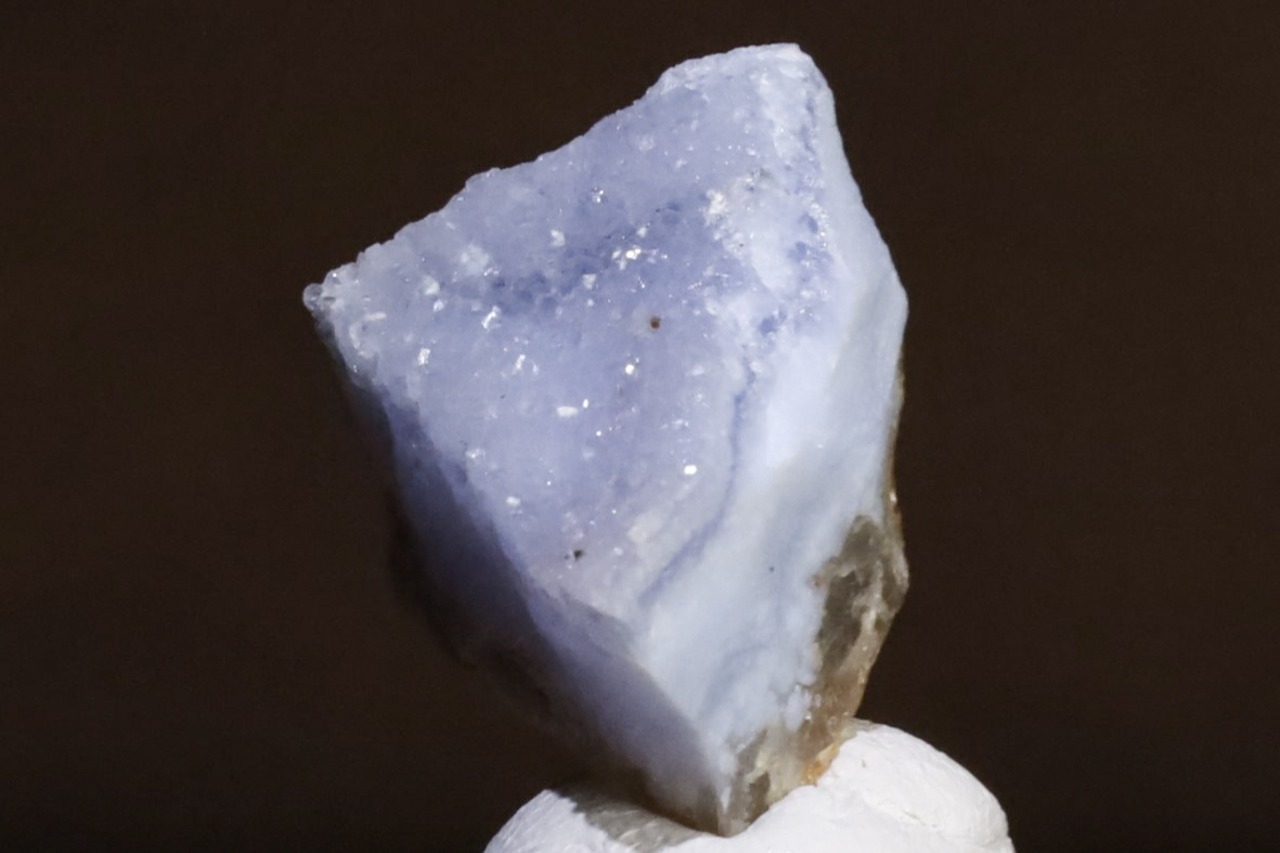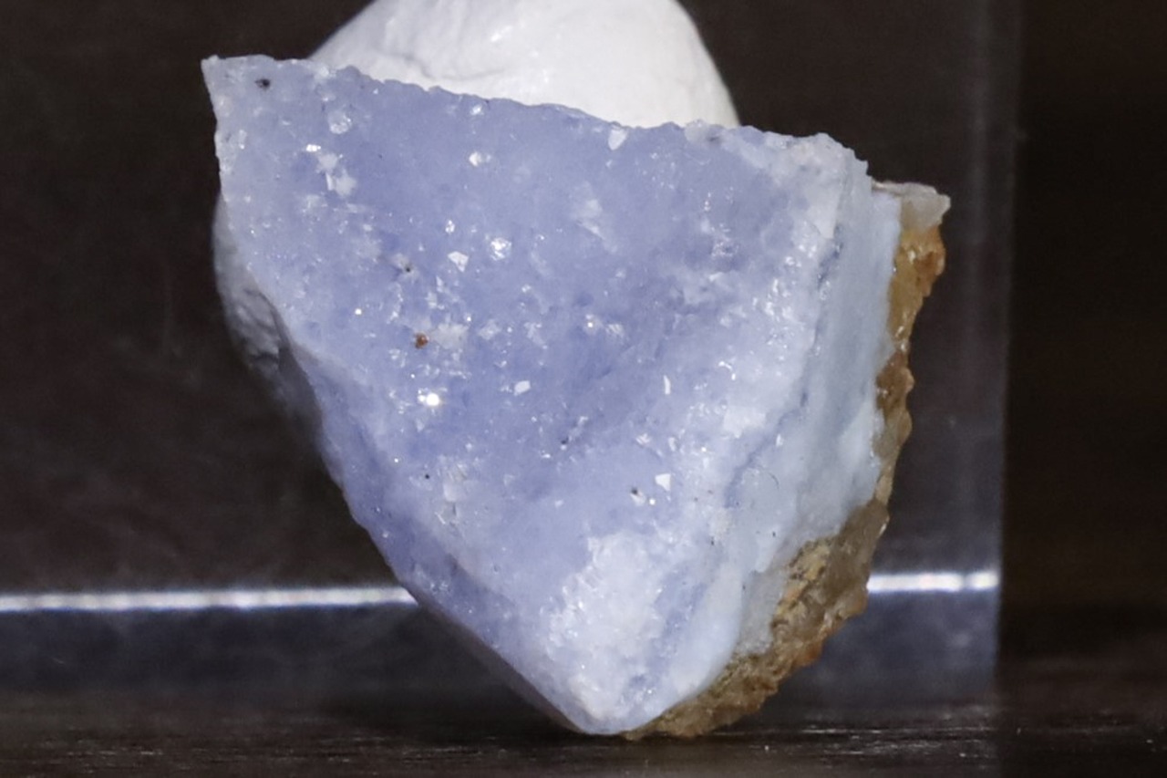 こちらはナミビア南部、Ysterputz mineから産出された、ドゥルージークォーツを伴うパープリッシュブルーアゲートの標本です。