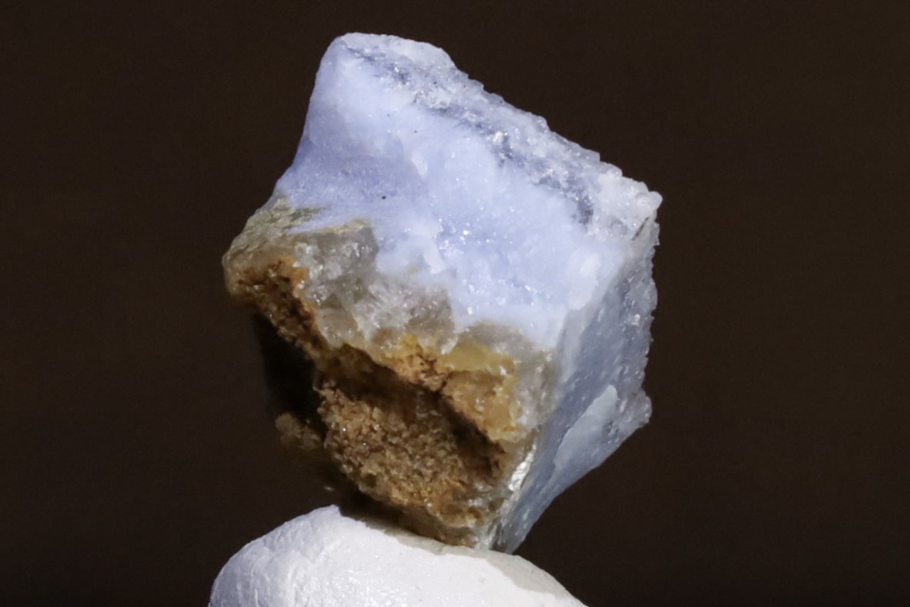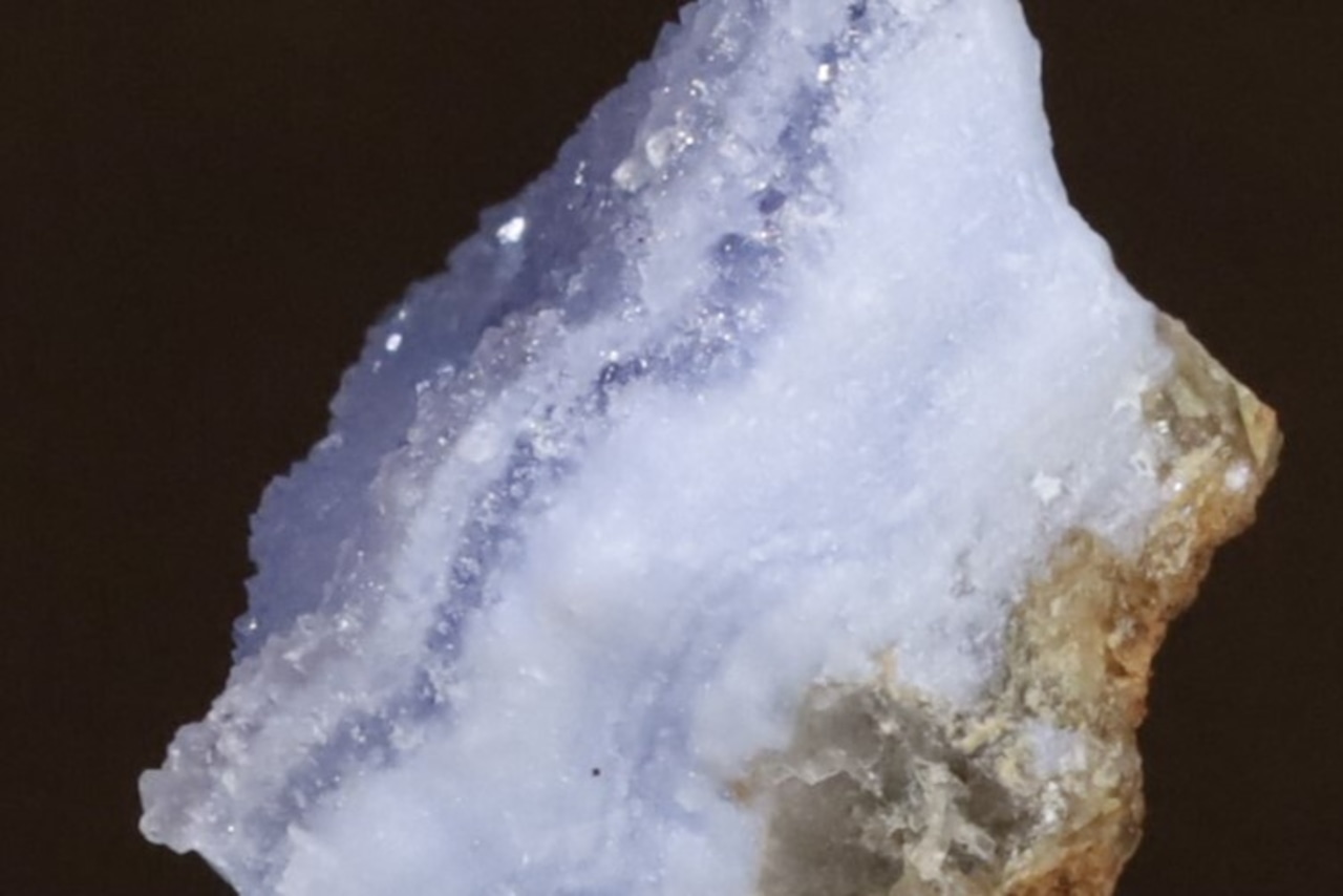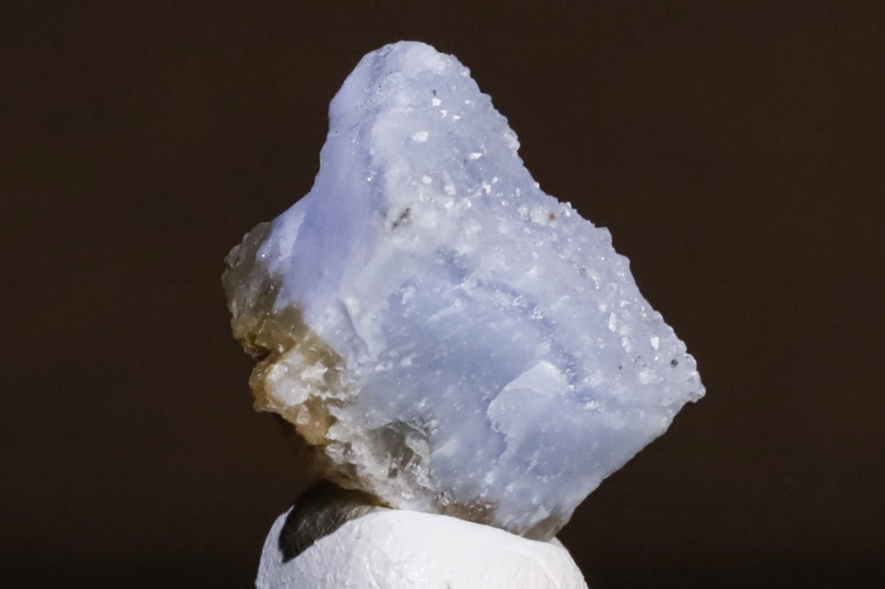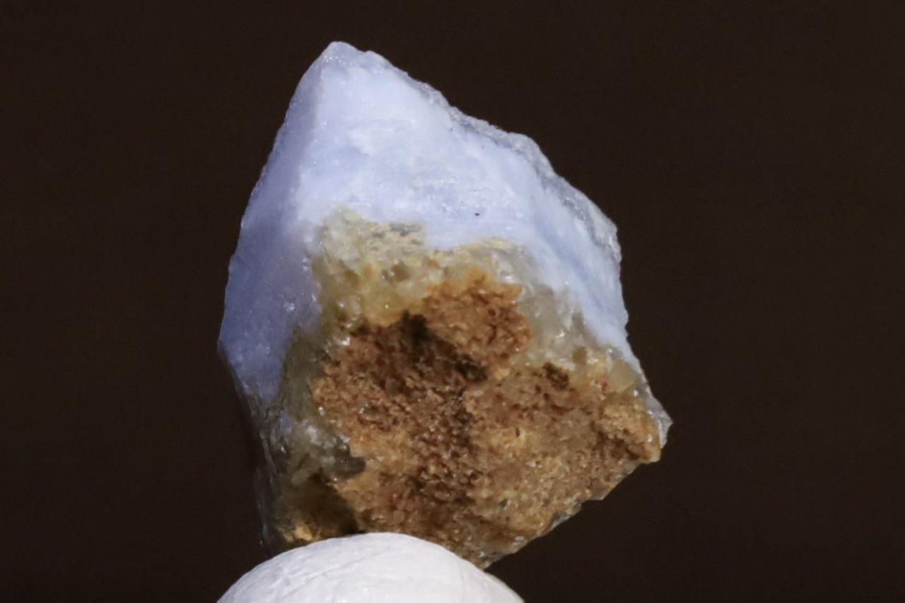 こちらはナミビア南部、Ysterputz mineから産出された、ドゥルージークォーツを伴うパープリッシュブルーアゲートの標本です。