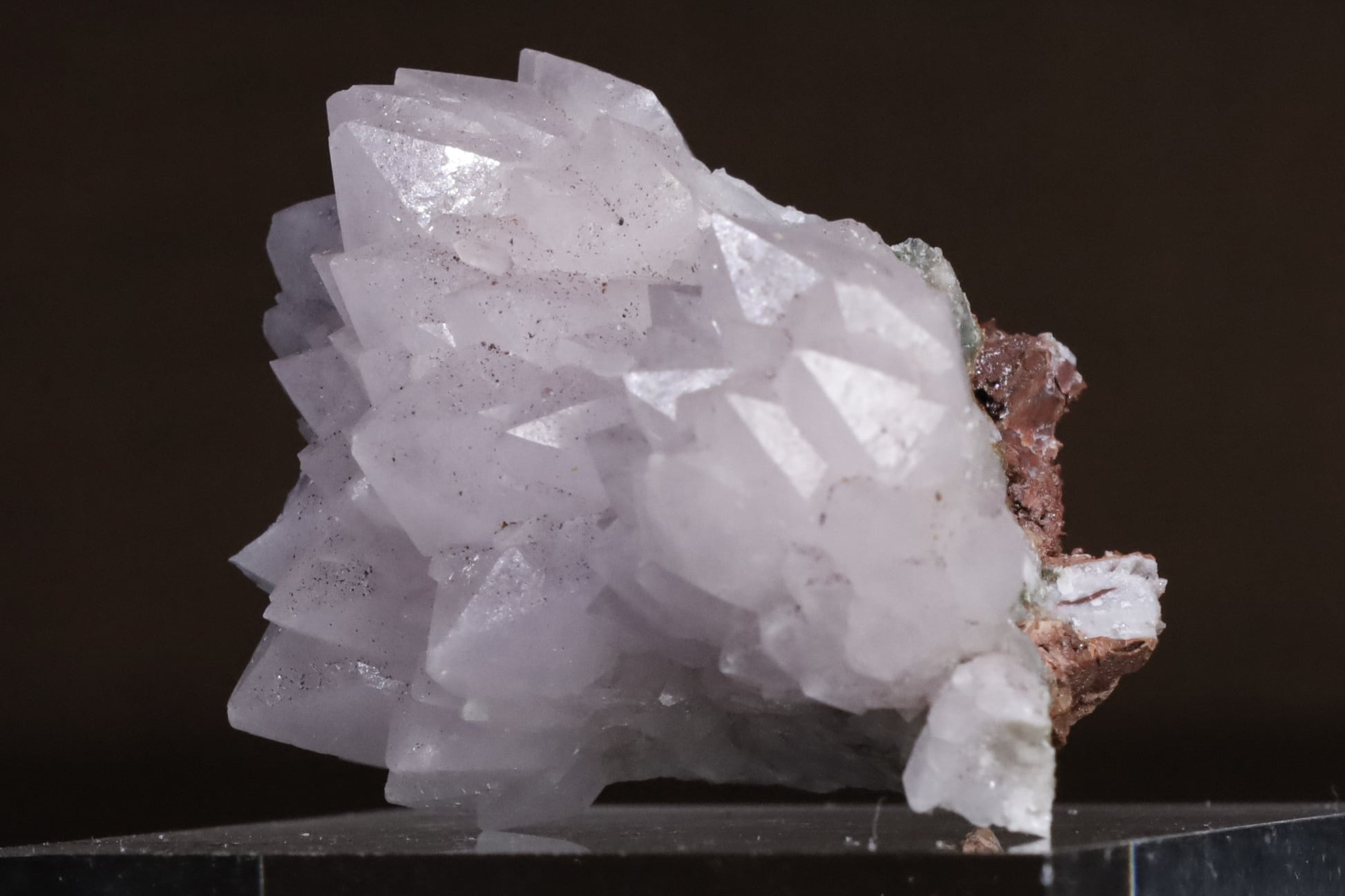この標本では、花弁を広げたような放射状群晶構造が見られ、ピンク寄りの発色が珍しく、通常のアメジストとは異なる柔らかな表情を見せています。