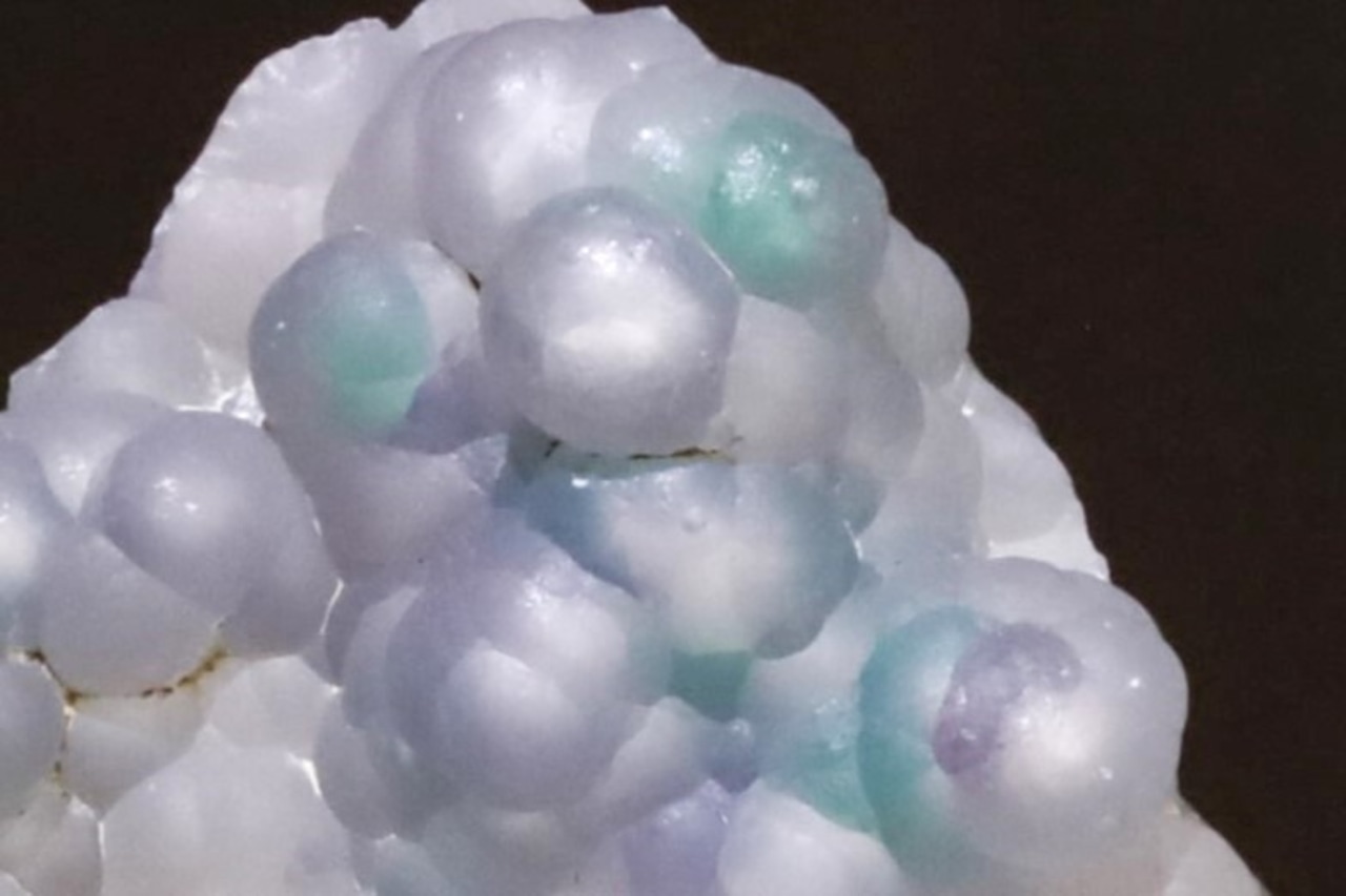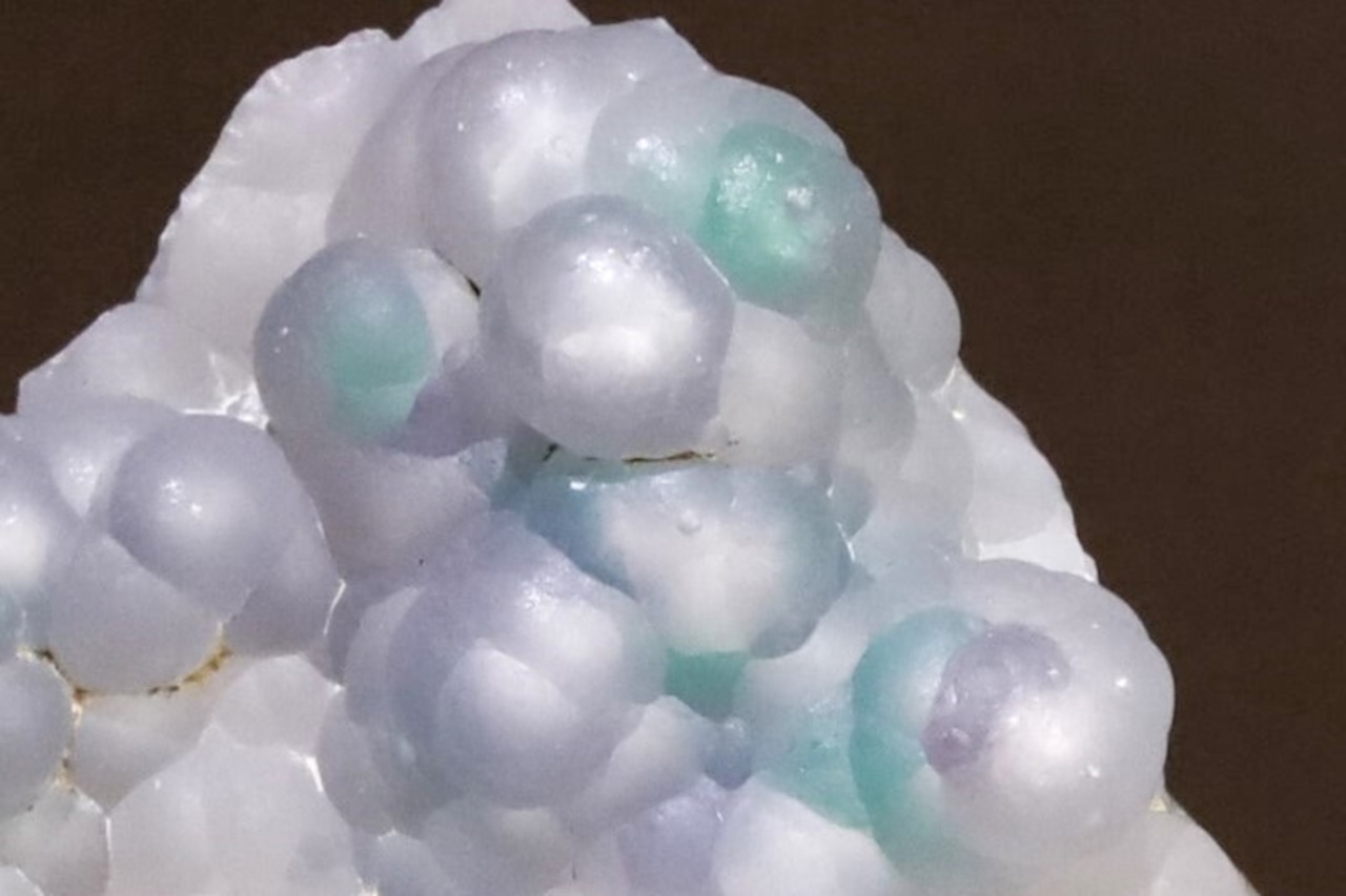 オビ島周辺は第三紀~第四紀の火成岩や貫入岩を含む地質系を持ち、低温熱水作用や断層・割れ目を通る鉱液の作用が活発で、珪酸質流体と銅を含む流体が交錯しながらカルセドニー層中に二次銅鉱物を析出させた可能性が指摘されています。