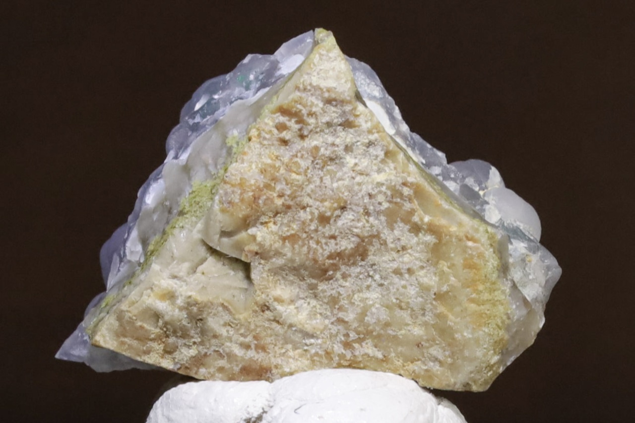 この標本の希少性は、カルセドニー中に自然に クリソコラなど銅鉱物を含む共生構造 を持つ例が極めて限られていることにあります。オビ島の地底で、時間と化学反応が織りなした微細な鉱物の共演を感じさせる一品を、ぜひあなたのコレクションに迎えてみてはいかがでしょうか。