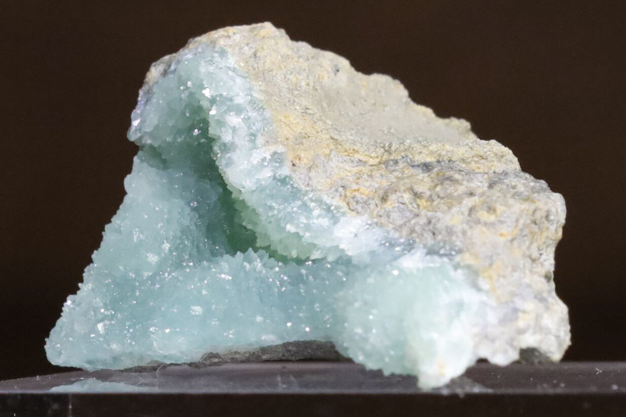 ブルーの色味が綺麗で、少しVugになっているので、ルーペを使用するとスミソナイトの綺麗な結晶の世界をお楽しみいただけます。また、手持ちライトをあてるとキラキラして綺麗です。