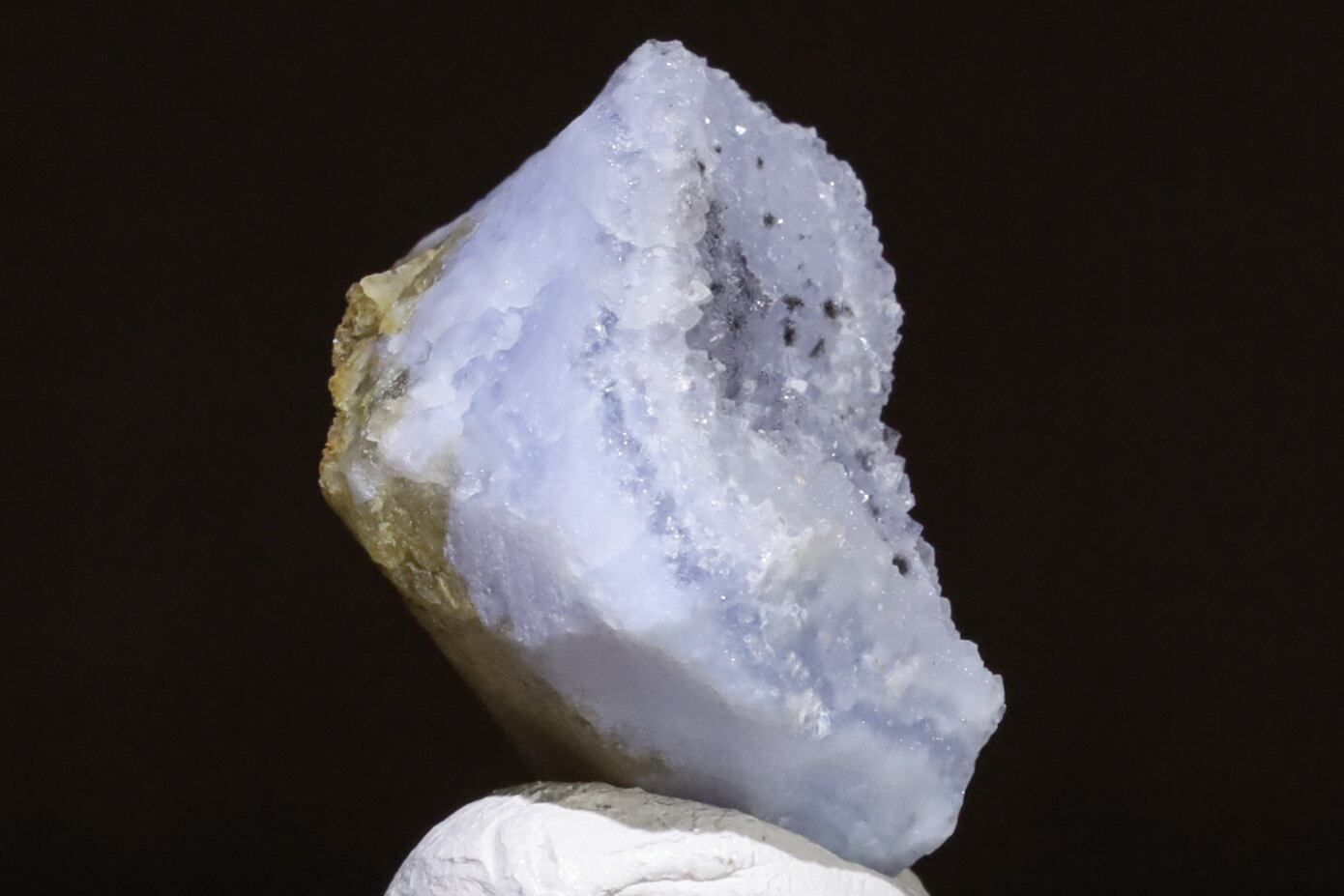 こちらはナミビア南部、Ysterputz mineから産出された、ドゥルージークォーツを伴うパープリッシュブルーアゲートの標本です。