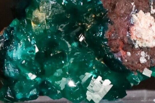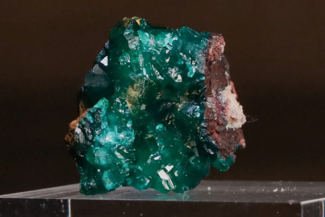 そんなコチラ、通常光下では7枚目の画像のような感じにも見え、マラカイトは肉眼では少し感じる程度ですが、光源近くで10倍ルーペで見ると、メイン画像のような、美しい幾何学造形や色味の結晶の世界をお楽しみいただけます。また、上手く撮影できませんでしたがカット5の上の方が僅かにVugのようになっていて、光源直下ルーペで見ると最高に美しい色味のダイオプテーズの結晶の世界が見られます。
