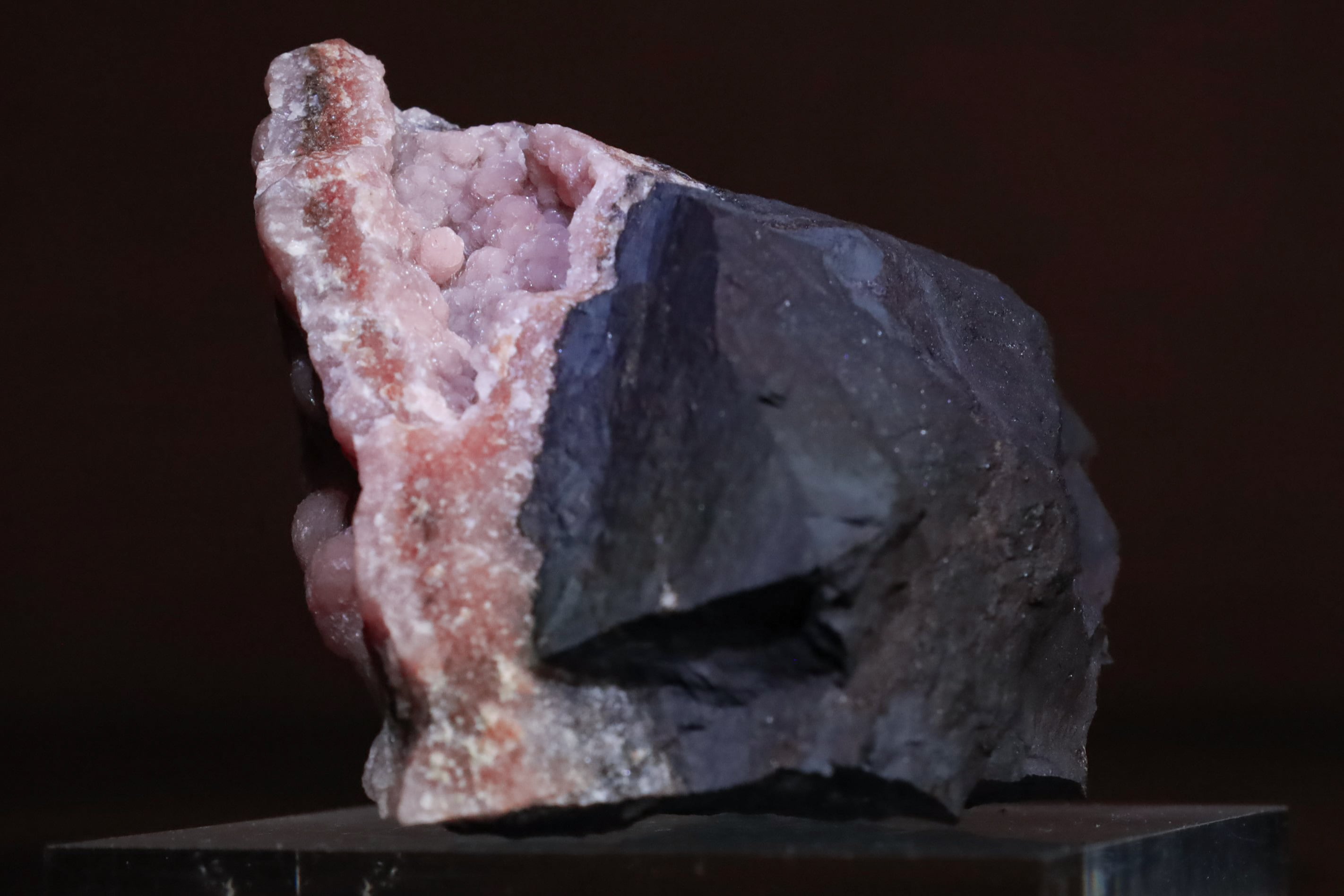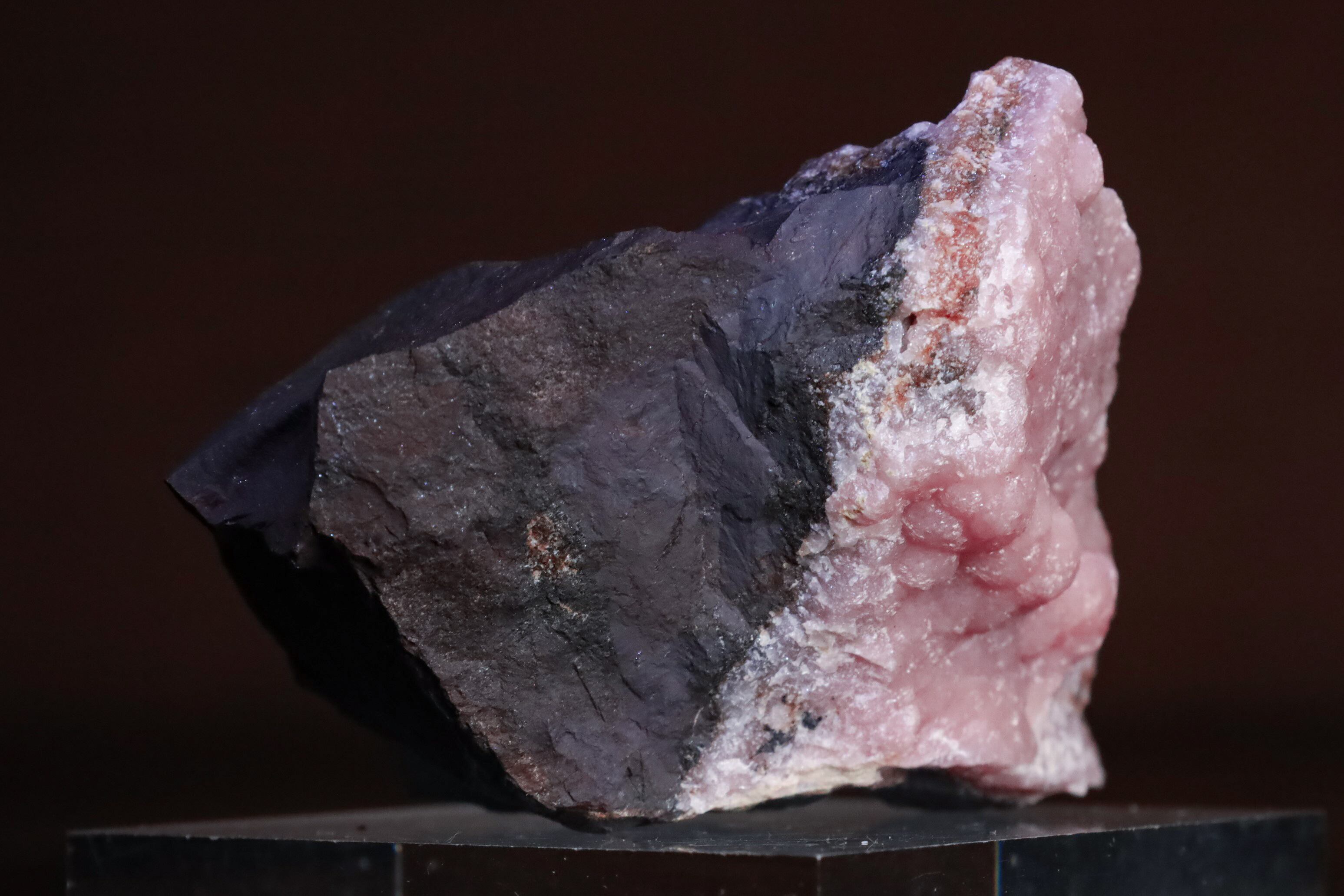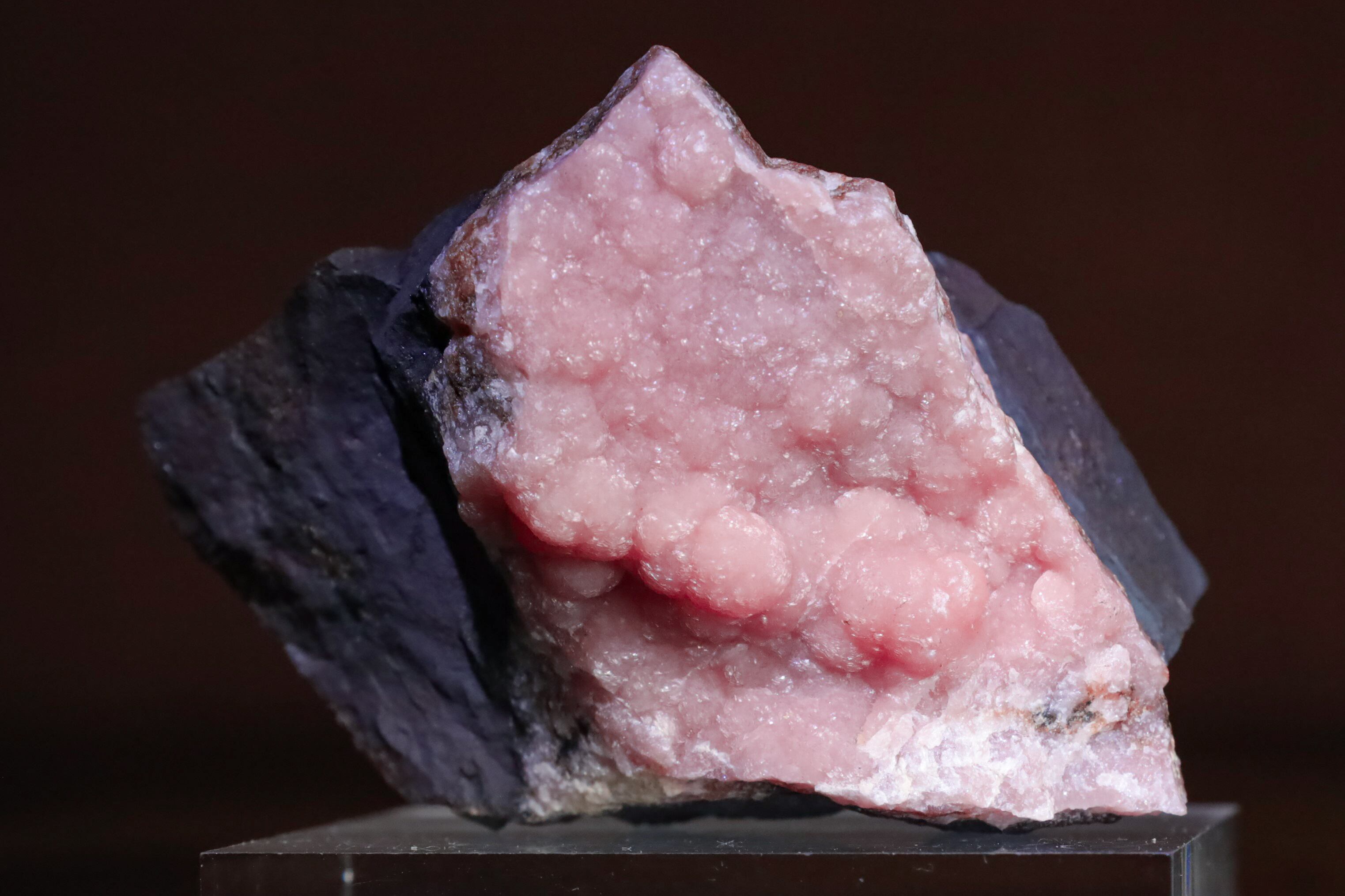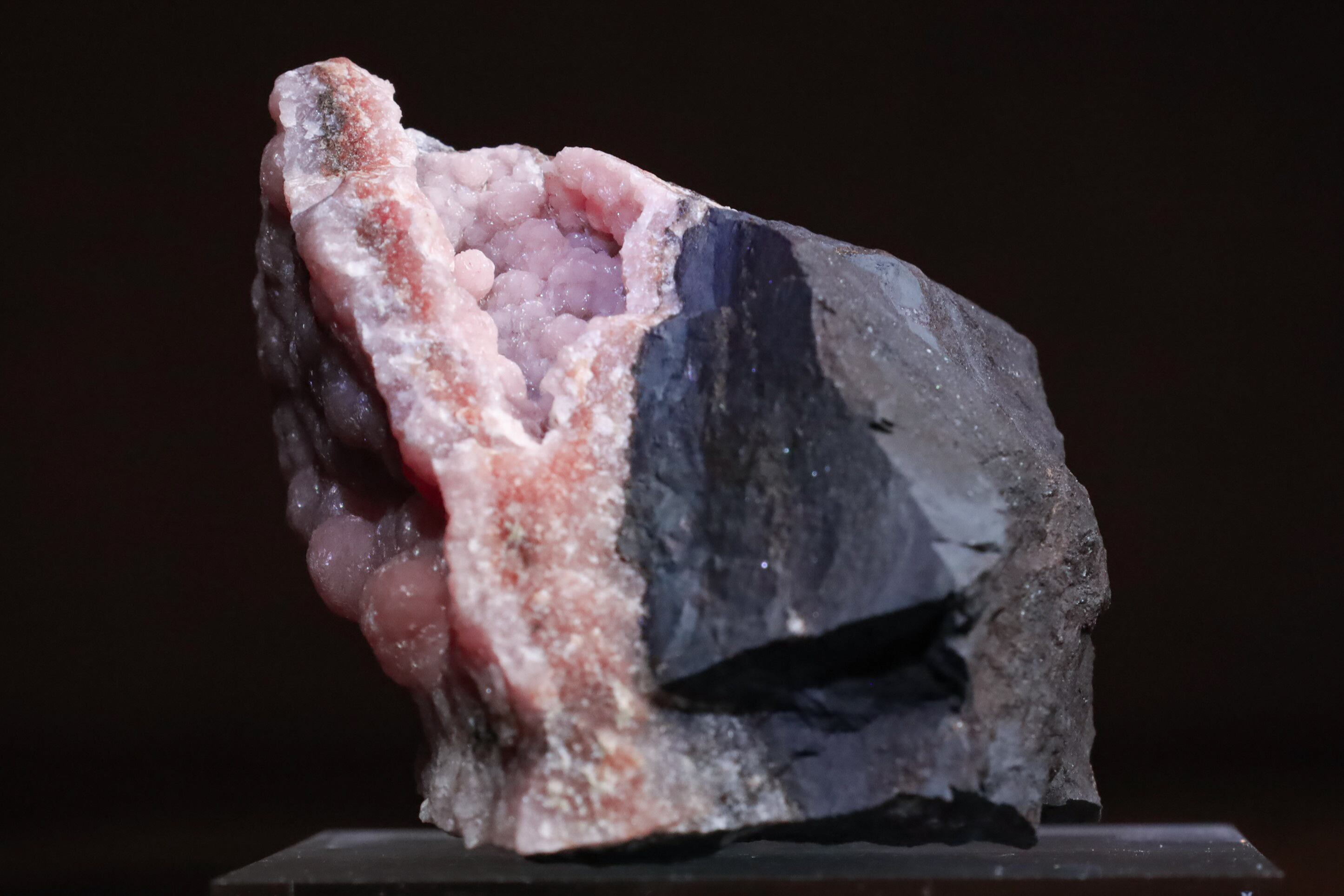 カラハリマンガン鉱床(通称KMF=現在稼働しているマンガン鉱床としては世界最大級で、24億年前から22億年前の古原生代に形成された鉱床です)の特異な地質環境が生んだ極めて希少な結晶で、この鉱床のマンガン含有量の高さから他の産地の色味では見られないピンクのトーンが美しく際立っています。