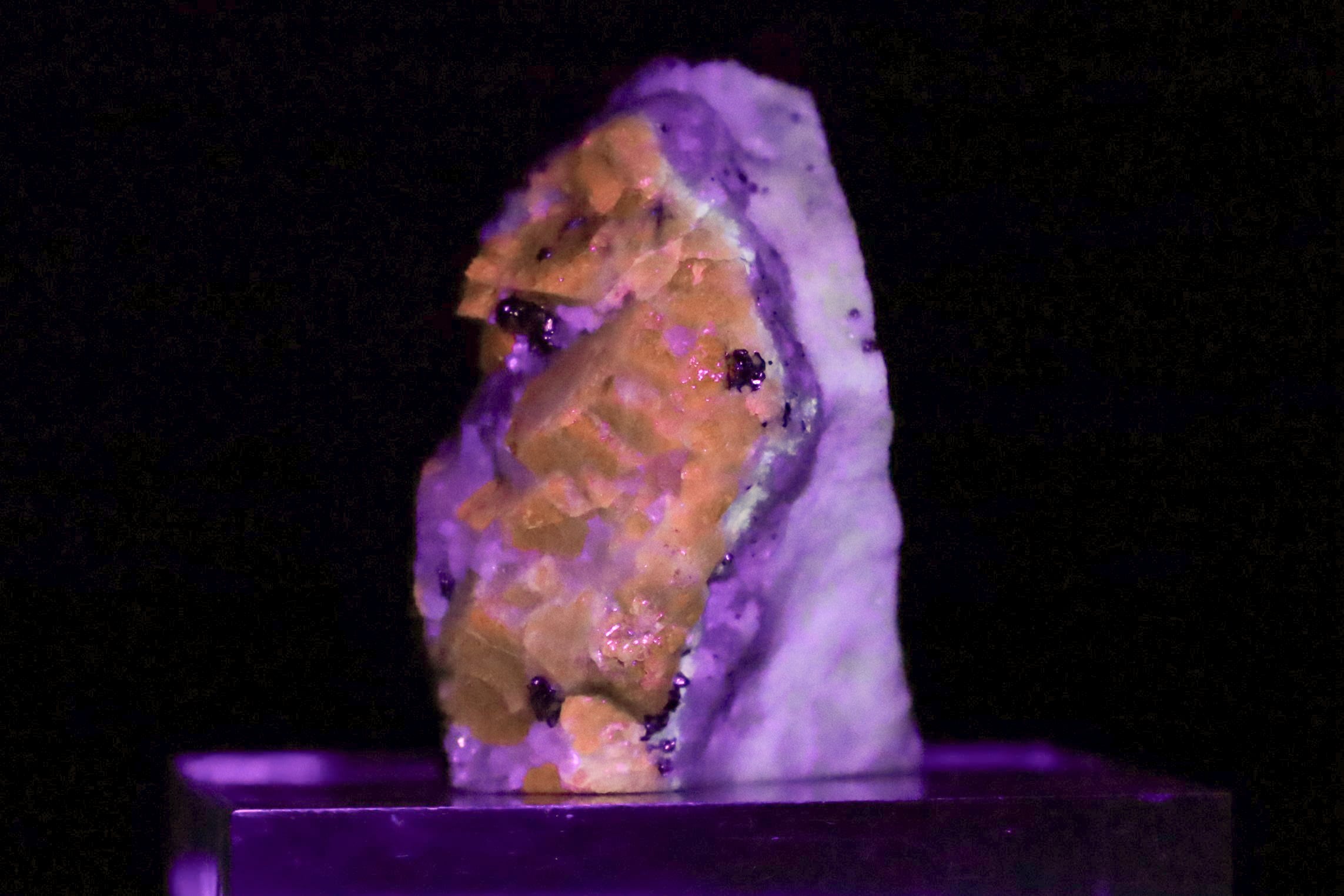 ※ブラックライトをご使用になりますと基本的には画像のような感じで蛍光しますが、機材スペック的に蛍光性の色味の忠実な再現ができていないこともありますので、すみませんが、なんとなくのイメージとして頂けますと助かります。オレンジとイエローに蛍光する部分がありますが、紫色の部分はライトの色の干渉で紫には蛍光しません。
