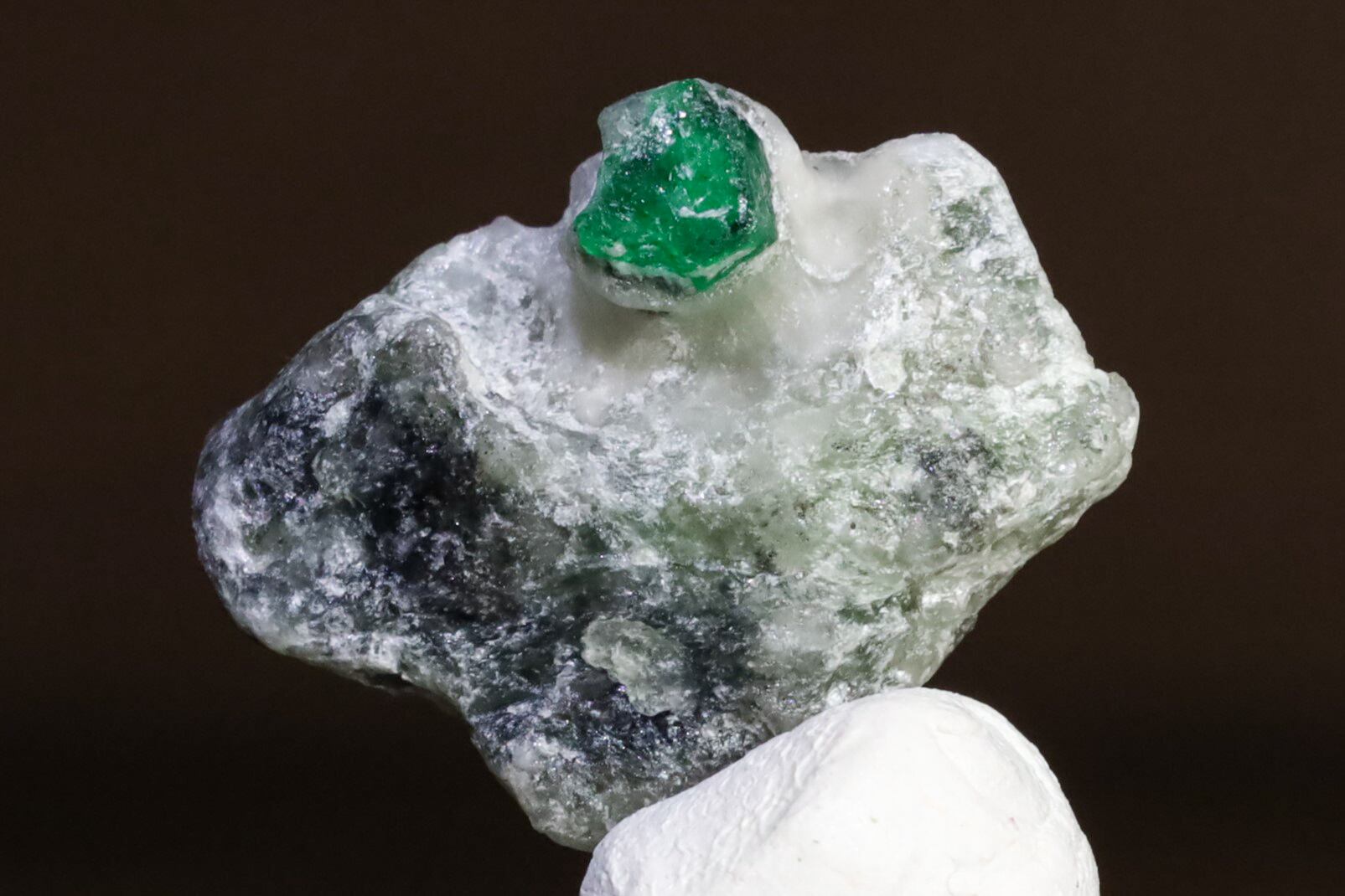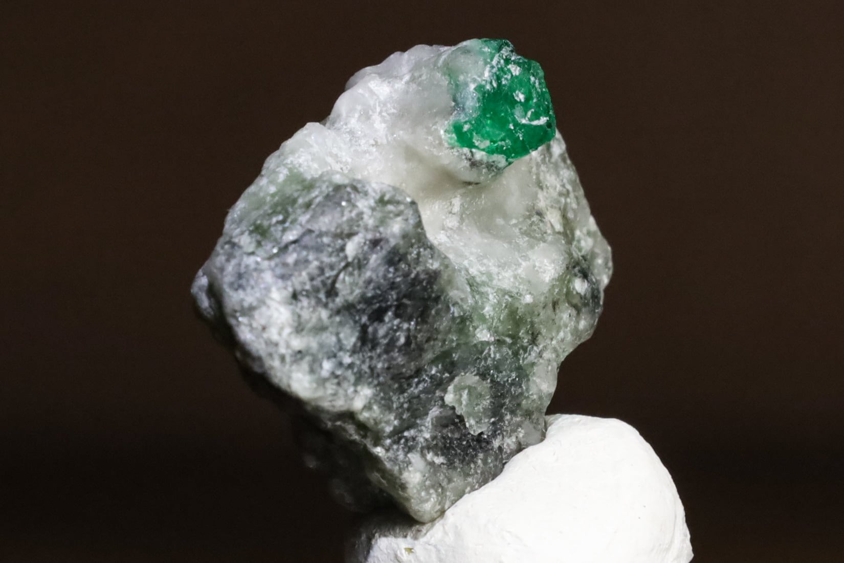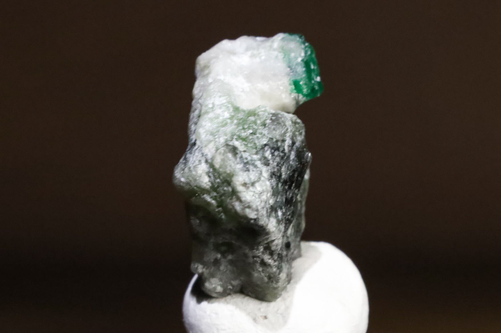 こちらはパキスタン、スワート渓谷から産出した、自然界による美しく濃厚なエメラルドグリーンの色味を持ったエメラルドの標本です。この渓谷はヒマラヤ山脈とヒンドゥークシュ山脈の接点近くに位置し、複雑な造山・プレート衝突作用によって生まれた地質構造を背景に、希少な鉱物環境を育んでいます。