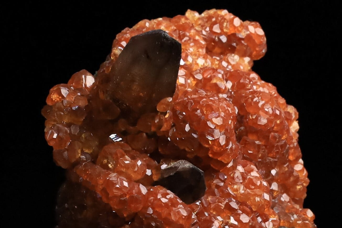オンライン上で購入可能な、スペサルティンガーネットとスモーキークォーツの共生結晶は数点あるものの、コチラのように美しい色味を持った見事なスペサルティンガーネット のクラスターと、光源直下では透明感もある綺麗なスモーキークォーツの共生結晶は皆無と思いますので、貴重なコレクションの一つにいかがでしょうか?